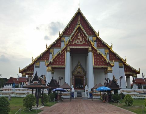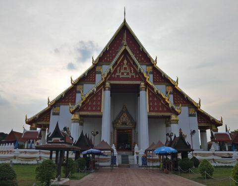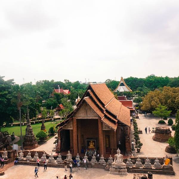 紧挨着的Wihan Phra Mongkhon Bophit看起来则没有那么历史悠久,高大的庙...紧挨着的Wihan Phra Mongkhon Bophit看起来则没有那么历史悠久,高大的庙堂一如东南亚佛寺的巍然壮丽。寺内供奉的巨大青铜坐像,据说建于15世纪,曾经立于户外的风霜雨露,终究换来信徒共筑的庙堂之上,也算是一...紧挨着的Wihan Phra Mongkhon Bophit看起来则没有那么历史悠久,高大的庙堂一如东南亚佛寺的巍然壮丽。寺内供奉的巨大青铜坐像,据说建于15世纪,曾经立于户外的风霜雨露,终究换来信徒共筑的庙堂之上,也算是一次华丽的转身。 展开