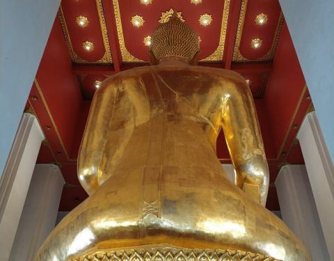 不过现在已看不出青铜的颜色,因为已经全部被贴金,真的,十分的庄严肃穆这座寺庙看上去相对比较新,但是建于1357年,也是一座有着近600年历史的老寺了。寺庙里供奉着一座青铜制的巨大坐佛高17米,是泰国最大的青铜佛像之一。不过现在已看不出青铜的颜色,因为已经全部被贴金,真的,十...这座寺庙看上去相对比较新,但是建于1357年,也是一座有着近600年历史的老寺了。寺庙里供奉着一座青铜制的巨大坐佛高17米,是泰国最大的青铜佛像之一。不过现在已看不出青铜的颜色,因为已经全部被贴金,真的,十分的庄严肃穆。 展开