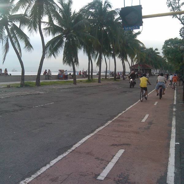 路很宽,车也不少,两侧很多现代化的建筑,路的西侧是海边,对于有时间的游客来说,可以看著名的马尼拉日落