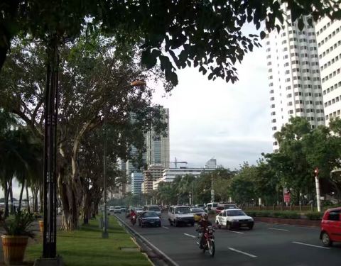 马尼拉湾旁边的滨海大道,路很宽,车也不少,两侧很多现代化的建筑,路的西侧是海边,对于有时间的游客来说,可以看著名的马尼拉日落。