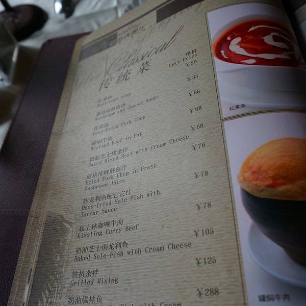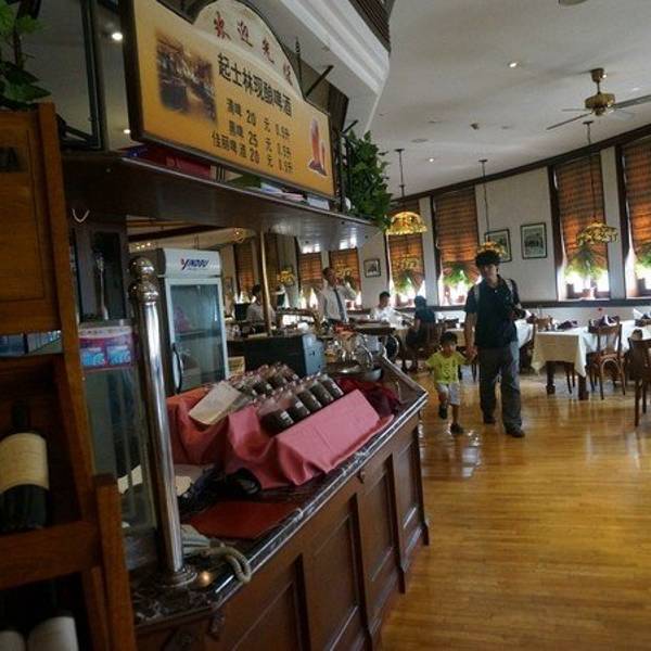 起士林,中外驰名,国营品牌西餐厅,在北京国营的餐厅都少了,更不要国营的西餐厅起士林,中外驰名,国营品牌西餐厅,在北京国营的餐厅都少了,更不要国营的西餐厅到了起士林,我才弄明白,原来这一层层是有分式的,二层是俄式的,三层是德式的,四层是法式的,我们上了二层,看了一眼菜单,晕菜,没有木总可以吃的,决定再上一层看到了三层,一进门,先要了菜单,看了看菜单,服务员也相应着介绍着,最后决定就这间德式的了点菜不是件难事,毕竟不在国外,三下五除二的搞定奶油土豆鸡肉沙拉 好吃点了两个汤,核桃鸡肉奶油汤,蘑菇奶酪浓汤,都好喝呢瓦罐牛肉,太推荐了,小朋友吃非常的好,肉炖的很烂呢蘑菇芝士酿虾仁德国咸猪肘,腌过了,可真不是正宗的,不过,肉还算多最后送了起士林自制苏达水,黑啤是单点的哈也是他们自制的,都不错,结帐474,还不错,价格很美丽吃好了,又陪小木儿在餐厅里转了一圈,赶紧打车回酒店睡午觉,看在车上已经不行了