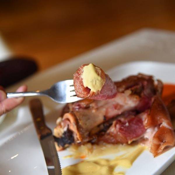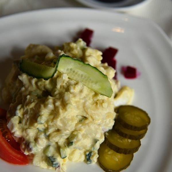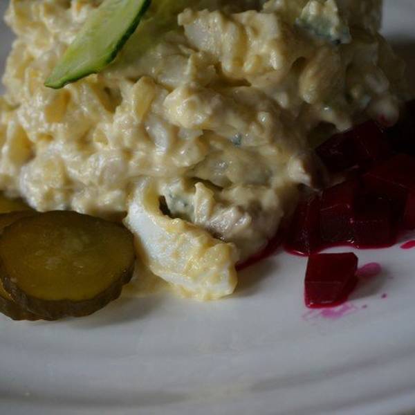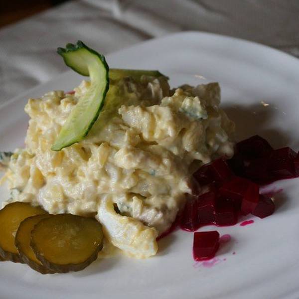 德国咸猪肘,腌过了,可真不是正宗的,不过,肉还算多。奶油土豆鸡肉沙拉 好吃
