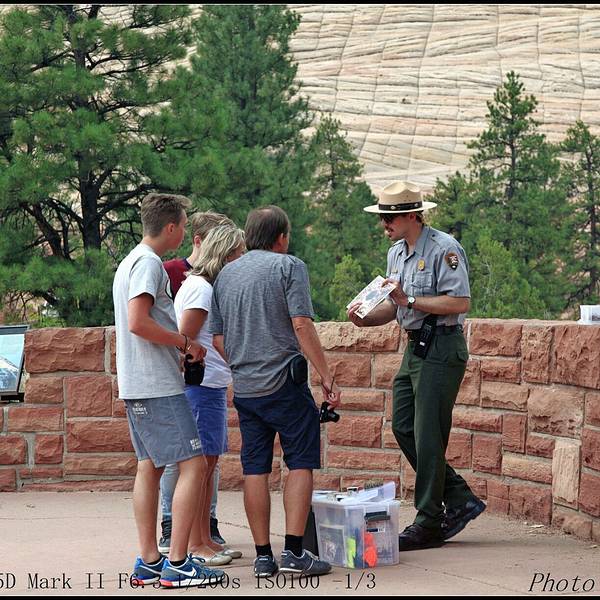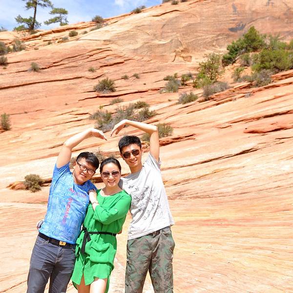 Visitor Center附近有两个Trail,分别是Watchman和Pa'rus Trail。本来我们是想去公园北边的,因为精华的景点都在北边,但是中午到的时候因为车子太多,所以封路了,Re-open的时间还不确定,无奈之下我们去了Watchman走走。走Trail之前还碰到一个大妈,跟自己的女儿走丢了,借我们手机打电话,小夏同志领着我们走回了Visitor Center,我们也算是很热心的帮助了别人。要是换成我啊,我也是很乐意帮忙,但怕是我很难找到Visitor Center的路吧。