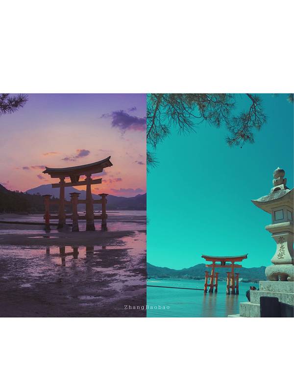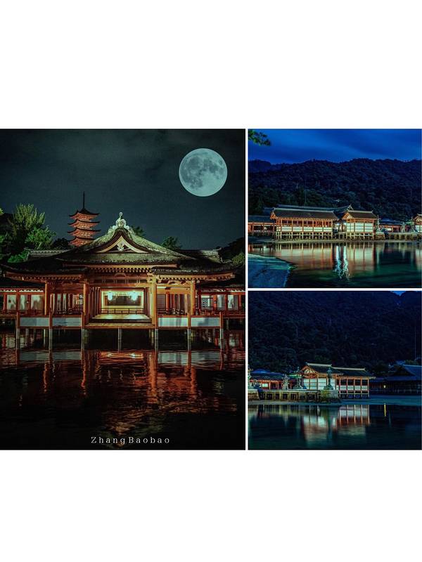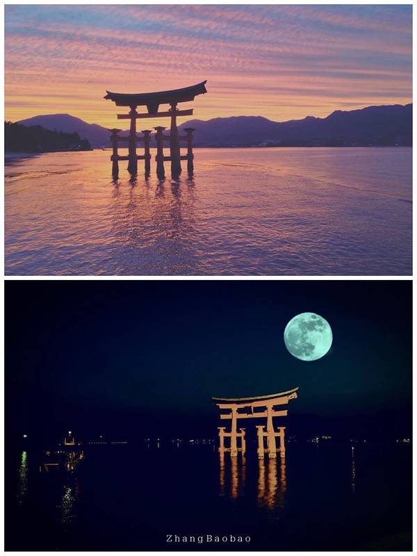随着潮汐涨退与昼夜交替,神社呈现出独有的一时一景的奇观。