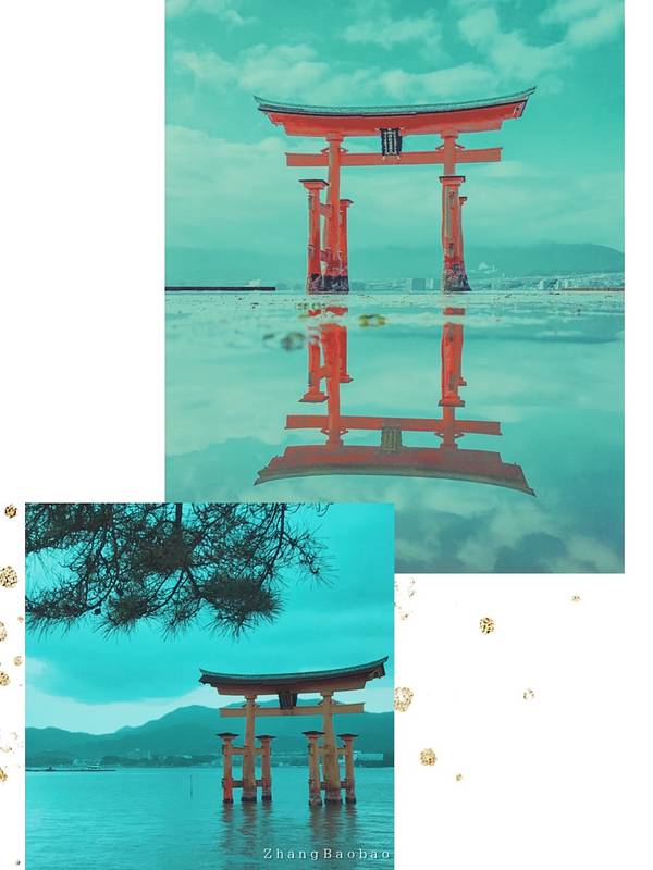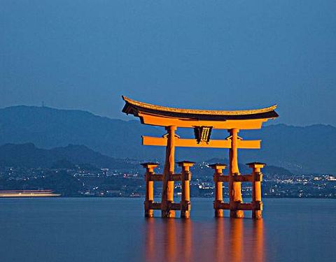 为了供奉神明,人们利用潮起潮落的自然规律,把鸟居设立在海水之中。便有了如今壮丽静谧的景象。