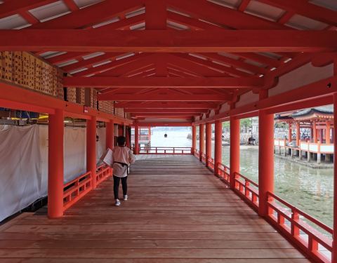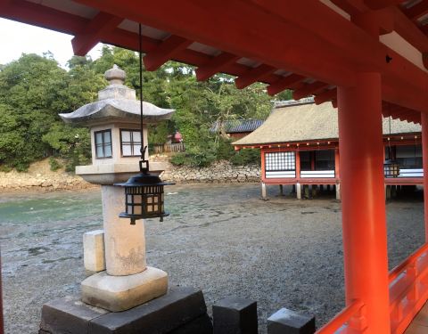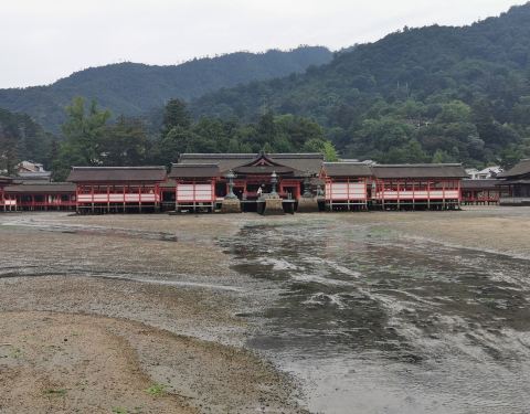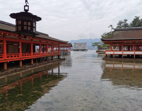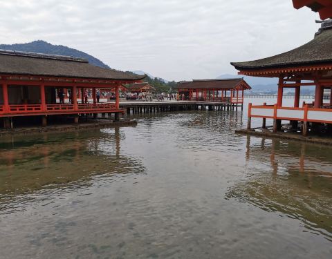 神社营业时间6:30-17:30,成人门票300,高中生200,中小学生100。售票处就在神社门口,买完票会免费赠送景点的介绍图,神社也不大,建议游玩时间30分钟。神社主要是以红色的木头为主结构,里面很广阔,因为来时正好下雨,在这避雨倒是很好的选择。虽然里面很大,但有些区域只能远看,有些地方还在维修,不对游客开放的。这个位置就是严岛神社牌坊正中间的位置,可以看到远处海里的牌坊,如果海水退潮到牌坊那,也可以下去玩的。这个牌坊可是宫岛官方宣传的主打景点。这个拱桥就是不对游客开放。可能是因为下雨,这里的游客也非常少,不知道晴天会不会多,不过作为日本热门旅游地来说,这里算不上很热门。严岛神社后面是居民区域,环境挺好的,小桥流水人家,生活在这的人很惬意。来时海水已经退潮,下面不时会有鹿在里面寻食。 展开