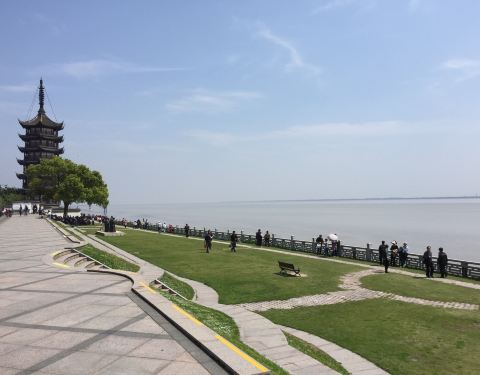 这里依然是观潮的理想胜地,不少人在这里欣赏潮水涨退的实景,加上周边的秀丽的风景,是旅游观光的好去处从观潮胜地公园內已经筑起围栏,已经很难看到鱼鳞形状的堤岸。这里依然是观潮的理想胜地,不少人在这里欣赏潮水涨退的实景,加上周边的秀丽的风景,是旅游观光的好去处。
