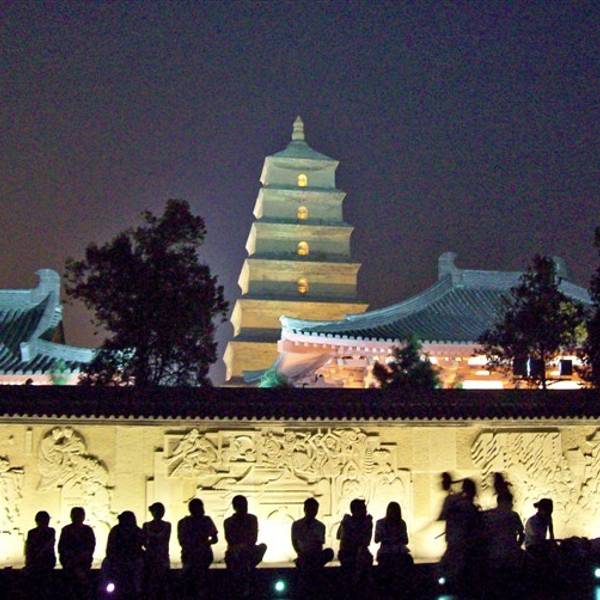大雁塔北广场音乐喷泉又叫西安音乐喷泉,位于大雁塔北广场中轴线上。音乐喷泉广场由水景喷泉、文化广场、园林景观、文化长廊和旅游商贸设施组成,是全国较重要的唐文化广场。广场上有数量庞大的雕塑、雕像,在欣赏音乐喷泉之余,细细的品味一下这些雕塑也是不错的选择。 音乐喷泉共分为百米瀑布水池、八级跌水池及前端音乐水池三个区域。其中八级迭水池中的八级变频方阵是世界较大的方阵,喷头点达1024个,可以变幻成排山倒海、莲花朵朵、云海茫茫、海鸥展翅、蝶恋花、水雾等多种水型,流光溢彩,美轮美奂。 而60米宽、20余米高的大型激光水幕中4台喷泉从水里喷出,在6米高空充分燃烧低温爆开,更增加了整个喷泉的夺人气魄。