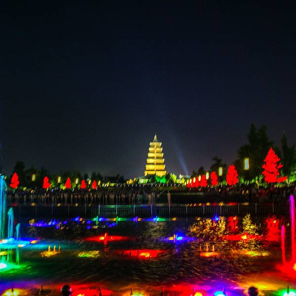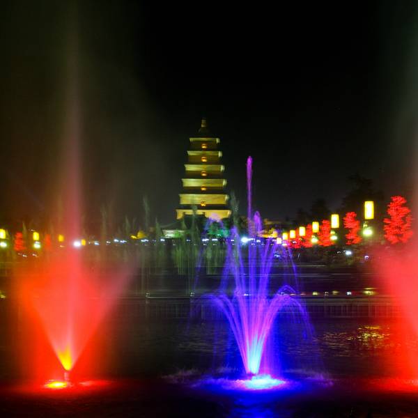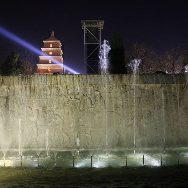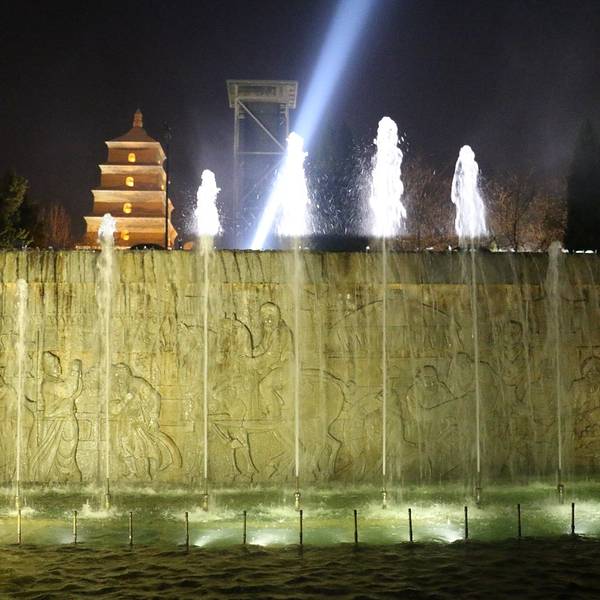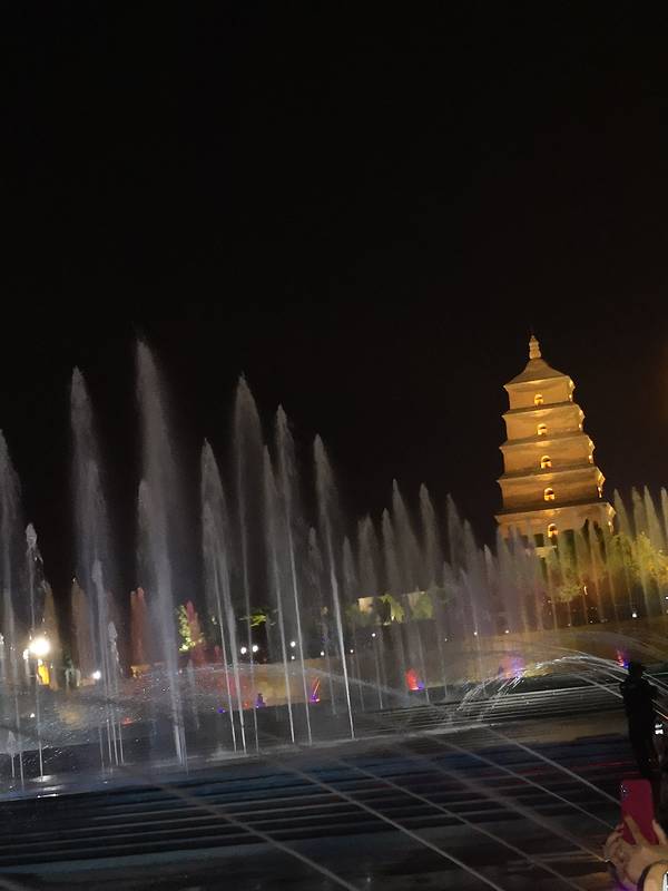大雁塔喷泉,晚上的第一场表演在8:30,全程20分钟左右,来自大城市的我对于这样的喷泉景象也颇为赞叹大雁塔喷泉,晚上的第一场表演在8:30,全程20分钟左右,来自大城市的我对于这样的喷泉景象也颇为赞叹。