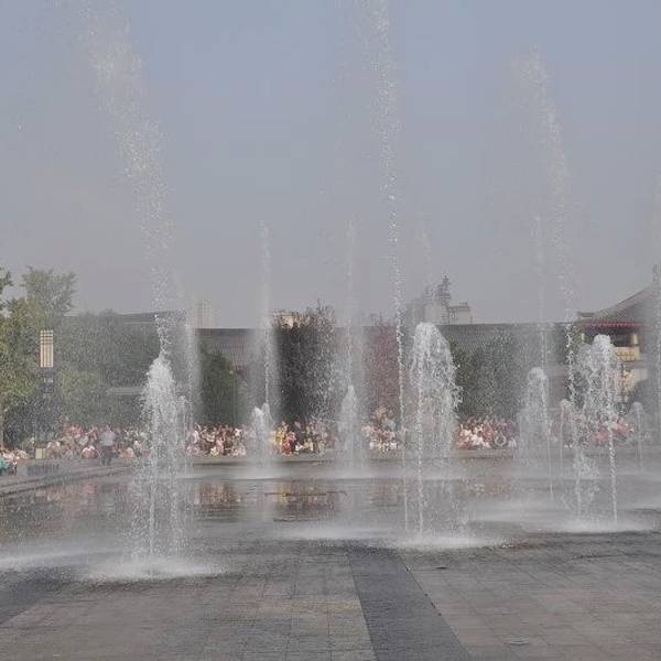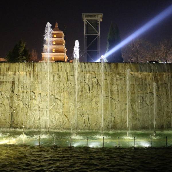 大雁塔以北的广场就是北广场,喷泉就在这北广场上~中央为主景水道,左右两侧分置“唐诗园林区”、“法相花坛区”、“禅修林树区”等景观。喷泉结合着这些景观,还有音乐及灯光,真的是美轮美奂的感觉。个人觉得晚上去看喷泉会更漂亮,毕竟结合着灯光,喷泉会显得更加绚丽一些~不过白天看的话,加上阳光的照射没准能看见彩虹,那也是极漂亮的~