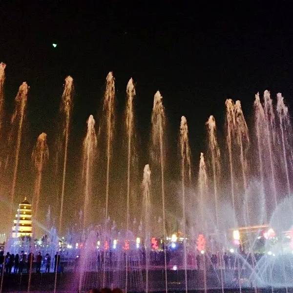 音乐喷泉⛲️西安大雁塔北广场的音乐喷泉🎶⛲️,晚上是人最多、最热闹的地方。各种颜色的灯光、喷泉与音乐🎶,完美的融合在一起。