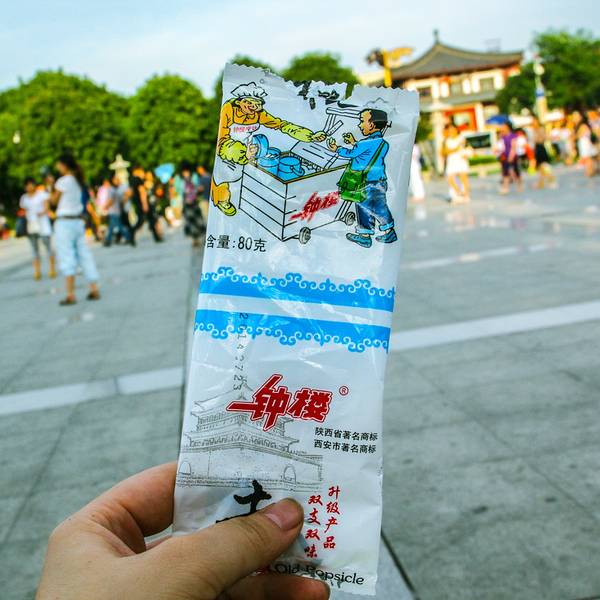 2、广场上面买钟楼冰棍,应该是西安的老产品,可以尝试。