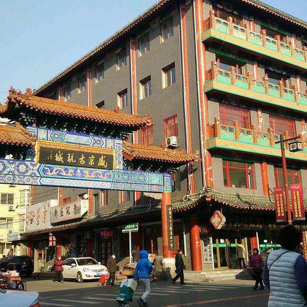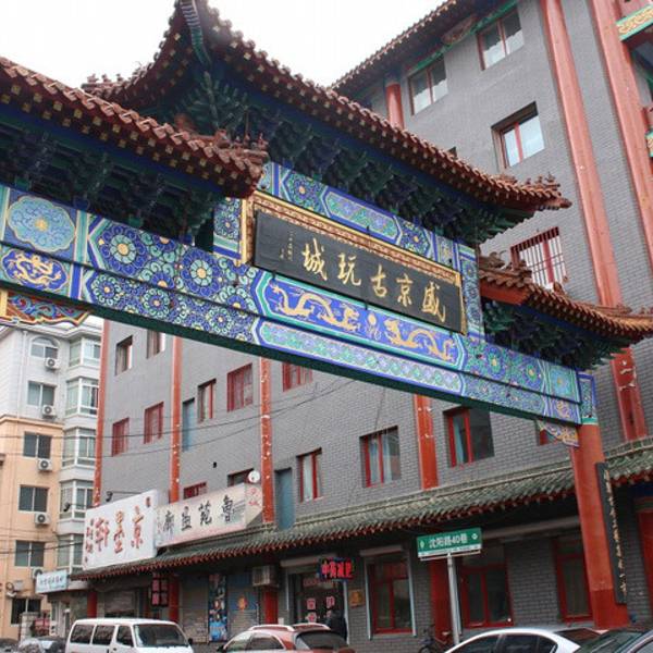 这一条街上卖古玩的比较多,自己对这方面不懂,又没有兴趣,所以不太多的介绍。这条街上都是满清的风格,连宾馆都不放过,只是不知道里面是不是满清的风格,不过楼外的空调显得格格不入,哈哈!这里没有太高的建筑,都是四层左右的矮房子,街道比较干净,毕竟是在皇城附近,去的时候车也不是很多,不过这里有很多禁停的地方。这里主要以古玩为主,也有几家小餐馆,在这里买了几顶帽子,有格格的还有皇帝的帽子,给小孩买的,价格都便宜的狠,三顶才五十块钱,感觉挺有收获的。这里其实买东西一定要靠讲价的,还在这里买了一把扇子,要三十,花了二十买的,上面都是清朝的历代皇帝。