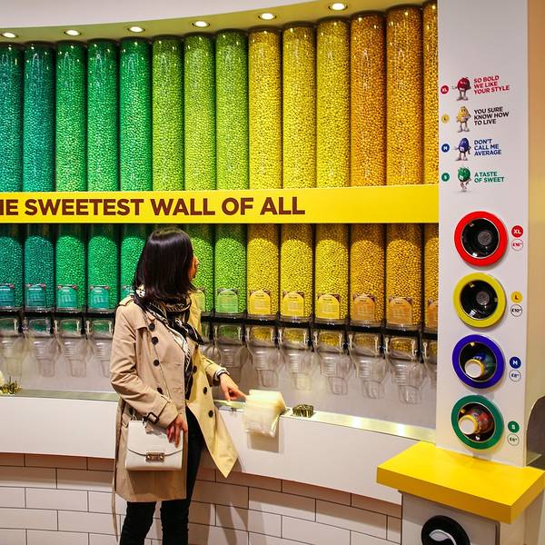 在这种五彩缤纷的世界里,童心会在不经意间被激发出来。路过M&M’s World,忍不住被吸引进去了路过M&M’s World,忍不住被吸引进去了。占据35000平方英尺,整整4层楼的伦敦M&M世界是全球第四家M&M'S巧克力豆旗舰店,同时也是世界上最大的糖果店。 店内不仅包含五颜六色的巧克力豆和炫目诱人的糖果,更有其他...路过M&M’s World,忍不住被吸引进去了。占据35000平方英尺,整整4层楼的伦敦M&M世界是全球第四家M&M'S巧克力豆旗舰店,同时也是世界上最大的糖果店。 店内不仅包含五颜六色的巧克力豆和炫目诱人的糖果,更有其他种类繁多的商品,涉及生活的方方面面:从挂件、玩具、文具、杯具、服装到厨房用品、洗浴用品,甚至还有宠物用品。 展开