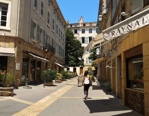 ...中心的米拉波大道(Cours Mirabeau)是最令人着迷的地段,被公认为是法国最优美的大道地址:Cours Mirabeau, 13100 Aix-en-Provence