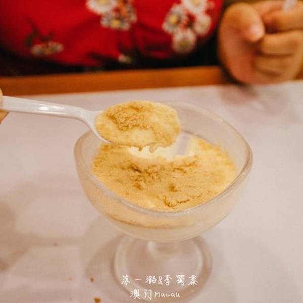 木糠布甸是除了蛋挞之外澳门的另一种招牌甜点,布丁上面撒了些木糠粉,干干的,甜甜的,不知不觉就消灭了一大半。金黄焦脆的色泽让人看着就食欲大增澳门的奶茶也是传统港式的味道