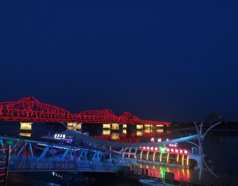 沿着鸭绿江边的一个开放性公园,顺江路走一走,看看对岸的朝鲜人民的田土和原野沿着鸭绿江边的一个开放性公园,顺江路走一走,看看对岸的朝鲜人民的田土和原野。还可以到桥上去走一走,雄赳赳气昂昂走上鸭绿江,壮怀激烈。