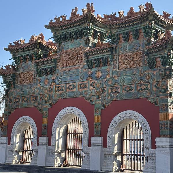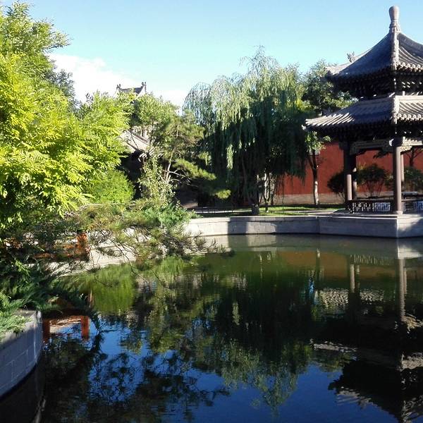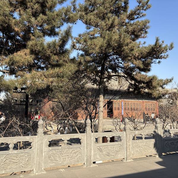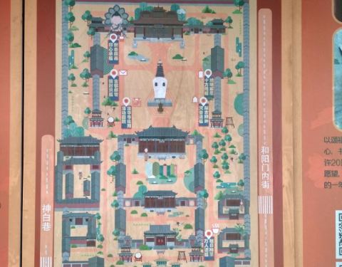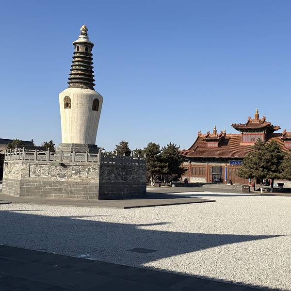 那白塔廣場遍鋪白色细石,簡潔肅穆,頗有日式寺院枯山水之風,在中國寺廟中似不多見,有创意除了覆钵式琉璃喇嘛塔是元明遺構,其它殿宇牌坊山門皆近年所建,當局斥巨資建寺,所為者何?那白塔廣場遍鋪白色细石,簡潔肅穆,頗有日式寺院枯山水之風,在中國寺廟中似不多見,有创意!