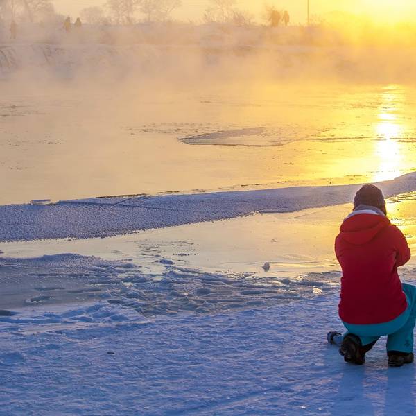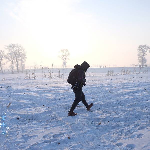 一下车真的好美,司机大哥说,这个时间是看日出最好的,先去上面看日出,然后再去对岸。此刻真是惊叹大自然,满满的幸福感,真的。虽然很冷。早上气温非常低,自己都能感觉到睫毛在结冰。这是整个东北行最冷的一天,脚完全冻没有知觉,出门前还特地贴了一片暖足贴,根本没有用,冷到骨子里。老妈看到相片一直在说看着都觉得冷,怎么跑去这么冷的地方。雾凇太漂亮了,天空的颜色也美,现场远远比相片上好看,我技术差拍得不好,你们有机会还是要去看一看。真的值,过到了岛上,太失望了,岛上根本没有结成雾凇。螃蟹问我后悔上岛吗。我答不后悔,如果我没有上到岛上我会以为岛上更加漂亮,会一直心念念,来了我才知道原来是这样。