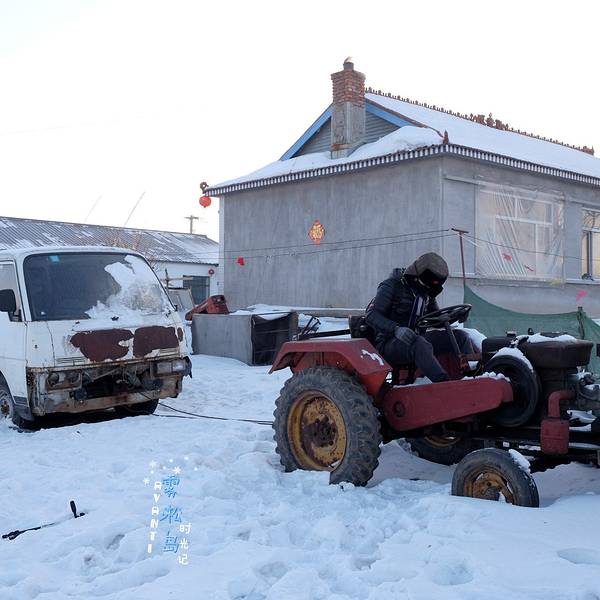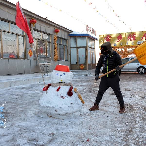 乐极生悲,雪人堆好后发现相机不知什么时候关了,什么视频都没有拍到。在把眼睛跟帽子拿掉以后,越看越丑,有点像那什么,稍稍改造,于是雪人就以新的形象跟大家见面了。不错吧!二傻欢乐多!天色渐晚(其实才三点多钟),往村里走,路过一片冰面,特别想去玩,可是人家都是小孩子在玩,没好意思。螃蟹看见拖拉机都不放过,硬要抝造型拍照。送他一个字傻这厮去捡别人的玩具来玩,估计因为太胖了,滑不下来。夕阳下金黄色的玉米堆又捡别人的铲子摆拍,主人家还以为他要搞破坏,特出来看了一眼,吓得呀!铲子差点丢掉。五谷丰登太阳一点一点地没,这个颜色的天空倒是挺漂亮。路口有看见卖糖葫芦的,缠着螃蟹硬要他买了一串,酸酸甜甜,竟然没有在广东吃到的好吃。这里的晚上没什么娱乐,大家都早早的睡了,明天要去雪乡了,不知走之前能不能看到雾凇,毕竟还是因为看雾凇来的。看运气吧!晚安 展开
