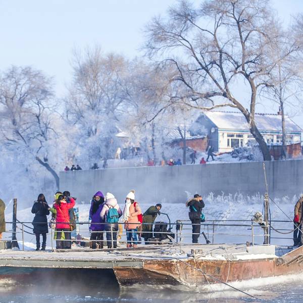 不虚此行, 普通村庄,瞬间变得银装素裹。韩屯这个普通村庄也在雾凇的装扮下变得超级美大年初一,最好的新年礼物~。太阳升起,雾凇散,回到对岸准备走了!韩屯这个普通村庄也在雾凇的装扮下变得超级美