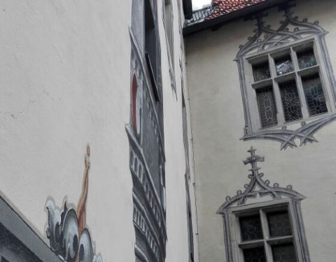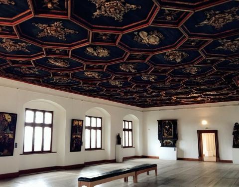 这个城堡修建于1499年,是大主教的官邸,它的主建筑的外立面上有很多立体的绘画是珍品,这个城堡的北侧现在是美术馆,有很多14~16世纪的作品。