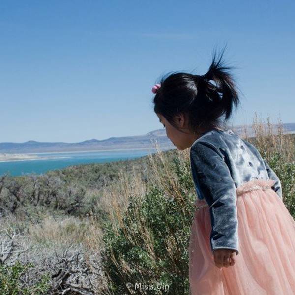 湖水没有出口,全靠蒸发,因此湖内留下大量盐矿,盐度是一般海水的两倍以上。湖上和小岛上可以看到许多加利福尼亚鸥鸟在飞翔或栖息。湖中盐分虽然很高,仍有水藻生长,有时可把湖变成绿湖。还生长着大量吃水藻的小虾,这些小虾就成了鸟类的食物,照片没拍出,但是真的有好多小虾和小飞虫。走近湖边,还有淡淡的腥味。小家伙对什么都很好奇。是不是该逗逗她尝一尝湖水的味道。呵呵呵,不知道有没有人敢尝一下。
