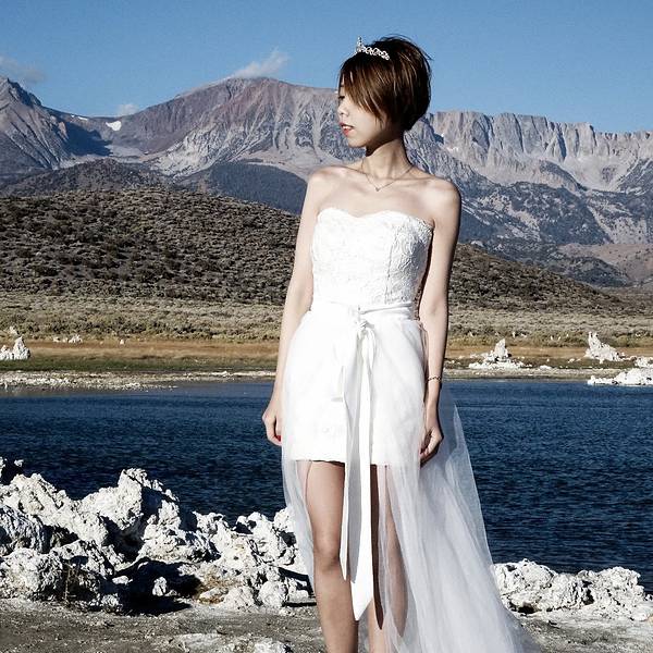 停完车,正好碰到一大帮刚拍完日出的摄影爱好者扛着三脚架回来,纷纷对身穿婚纱的我投来惊讶的目光,怎么可能不惊讶,现在外面的温度只有7,8度!
