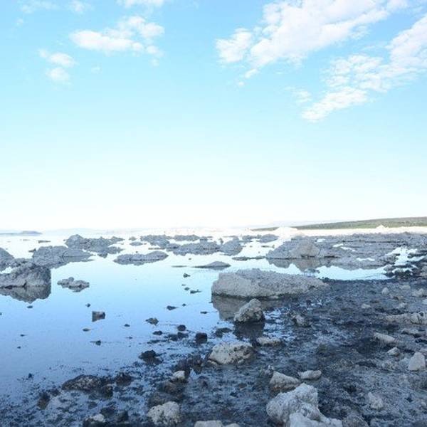 一个很小的入口,有停车的地方,远看有点像浮冰,近看是露出一半的石头,遥望远方水天一色,水里有天...mono lake