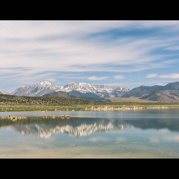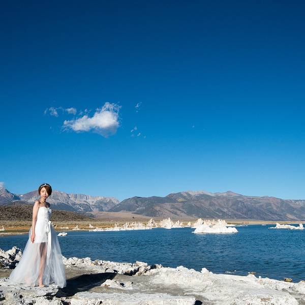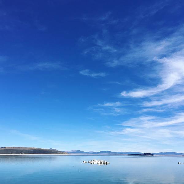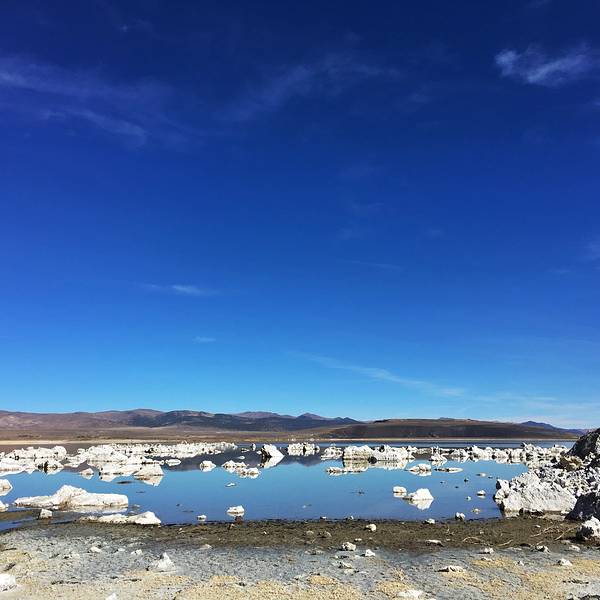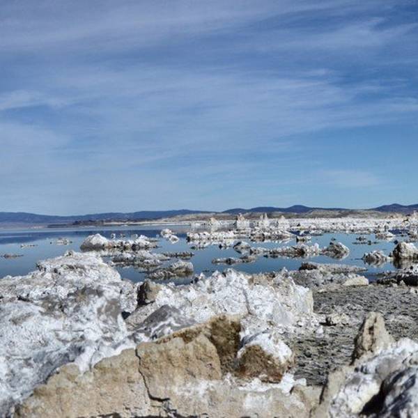 左边山体滑坡,右边是美的令人窒息的mono lake,一个很小的入口,有停车的地方,远看有点像浮冰,近看是露出一半的石头,遥望远方水天一色,水里有天空的倒影,天空有水面的颜色。
