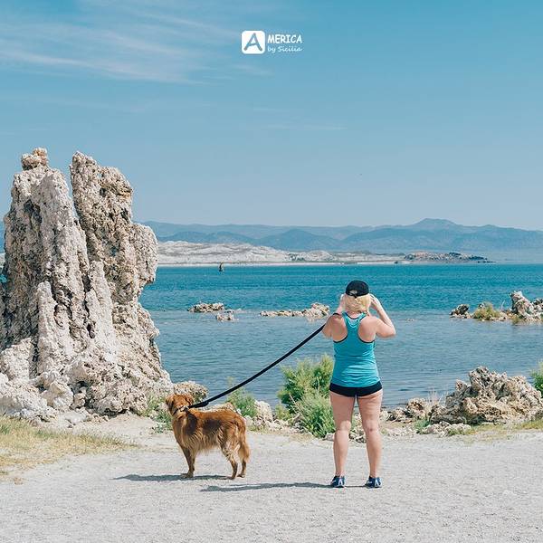 个人推荐南部的这个景点,还有工作人员免费介绍呢一个人旅行的状态真的很奇怪,比如我从来不会提前规划具体的景点,酒店也基本临时预定,这其实是防着自己在路上折腾太久,有时候就直接看着路边比较便宜的motel住下了。还好有这个习惯,不然我大概就错过了此行最...一个人旅行的状态真的很奇怪,比如我从来不会提前规划具体的景点,酒店也基本临时预定,这其实是防着自己在路上折腾太久,有时候就直接看着路边比较便宜的motel住下了。还好有这个习惯,不然我大概就错过了此行最值得称道的mono lake了。知道mono lake也是我晚上睡觉前无聊看了下周围的地图,才发现优胜美地东门口有这么一个类似外星球的所在地,我沿着Route 395开了半小时到了这个荒无人烟的地方。如此看来,这里真的游客不多。感受下一个人的孤独感。。我觉得我用来放零食的购物袋可真上镜啊。。沿着栈道走了一会,到了湖边,放眼望去,基本都是鸟类,现在并不是鸟类迁徙的季节,很难想象在秋季这里是怎样的场景。和鸟一样多的,大概就是苍蝇了。我觉得这里的苍蝇很特别啊,看起来都是在水里生长的,在这个含盐浓度比大海多三倍的湖里,能够生存的就是这些奇怪的苍蝇和丰虾了。Mono Lake是北美第二大湖,开车开一圈也要开很久,强烈建议想去的朋友先到游客中心去拿一份地图。整个Mono Lake四周都有观景点,所以可以根据自己的喜好去找合适的位置。个人推荐南部的这个景点,还有工作人员免费介绍呢~啊呀,英语不好,讲解只听懂一半,大概意思是说Mono Lake形成于70多万年前,在这片荒漠的地带这里的游客并不多。湖水的盐分相当于海水的3倍,没有任何的鱼类可以在这里生存。导览把丰虾和苍蝇的幼虫放在碗里给我们看,说这些是鸟类的食物,所以每到秋季鸟类迁徙的时候,这里每天都有上万只候鸟。这个时候的Mono Lake是最热闹的。湖面呈现出一种优雅迷人的蓝调,不同于大海的蔚蓝,显得清澈而又干净。湖面平静如一面巨大的镜子,对岸的雪山尽在湖中,盐度那么高的湖,难道不算是盐湖吗?老外的狗狗们真幸福啊,可以跟着主人到处旅游~下次麻烦带上我啊,我也不想开车啊~远处那些个奇怪的柱状物我一直搞不清算是什么地质。这些浅灰色和象牙形的“钙华塔”看起来真的不像是地球表面,实则是石灰岩所构成~我已经在无尽想象我要是一个人胆子大一些,真的应该来这里拍个星空啊。当我在这毫无遮拦的地方暴晒了2个小时并且喝完所有的水之后我觉得我应该撤了~优胜美地真是个奇怪的地方,Tioga Pass周遭的积雪尚未完全融化,而这里却干燥无比,此刻的气温已高达36度~张雷蒙说我是去战高温的,好像并没有说错。。小情侣们看见我拿着三脚架自拍很友好地过来问我是否需要帮助,我笑着拒绝了,然后匆匆离开,脑海中一直想着,有一天,我要回来拍个星空什么的~ 展开
