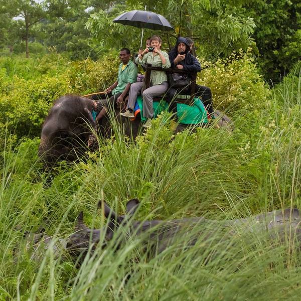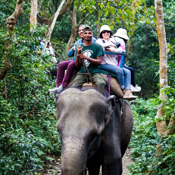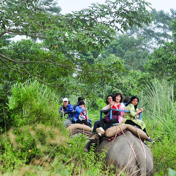 【...【特色】森林公园里住着各种野生动物,大象、犀牛、麋鹿等。我在很多东亚国家坐过大象,都是两人一起,但南亚的奇旺是四人一起的,高于二米的大象很是威严,带我们越过丛林,走向深处,一圈下来是40分钟左右。