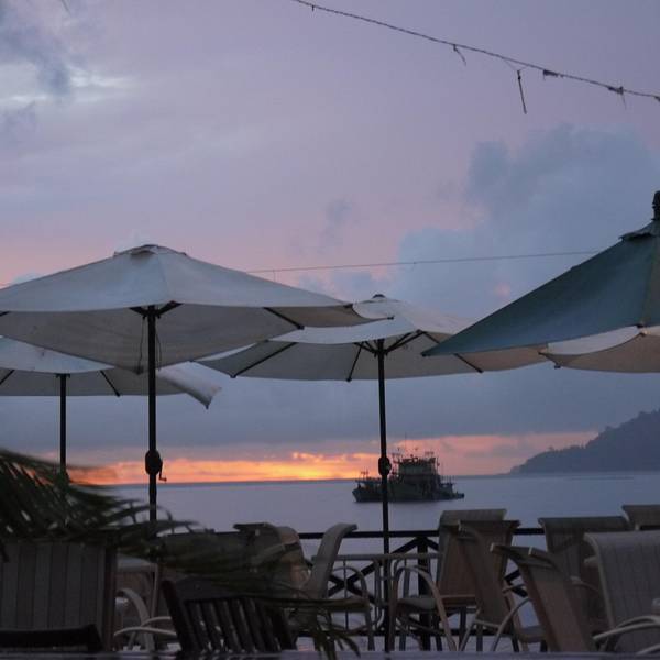 要说为啥叫菲律宾市场可能是因为都是菲律宾人在经营吧,其实沙巴这边有很多菲律宾人。市场就在海边,对面是LE MERIDIN,到的时候还看到一道彩虹,这是在欢迎我们的到来么。 找了个小摊吃了些东西,我没有吃老虎虾...