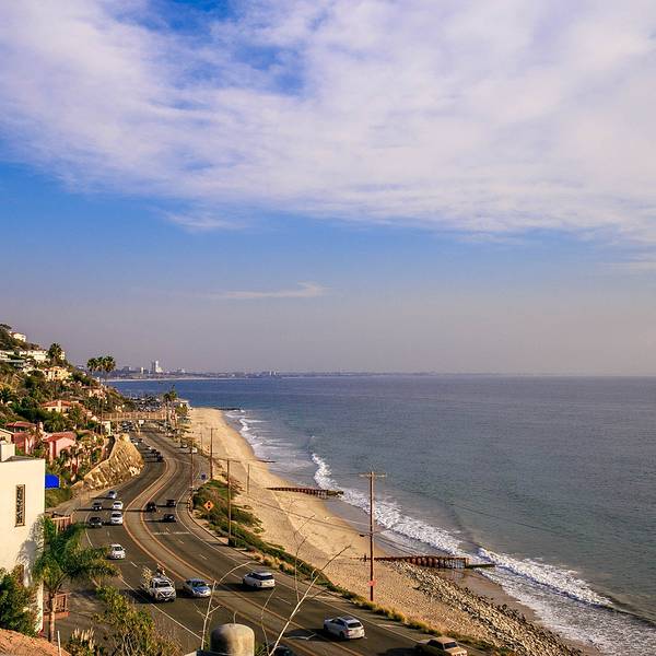 从一号公路拐到山上,身后皆是豪宅。这里可以远眺海滩及周边圣莫尼卡海滩出来就是一号公路,司机姐姐说可以带我走一小段,虽然这段公路最美的路段不在这里,但我们依然很兴奋从一号公路拐到山上,身后皆是豪宅。这里可以远眺海滩及周边