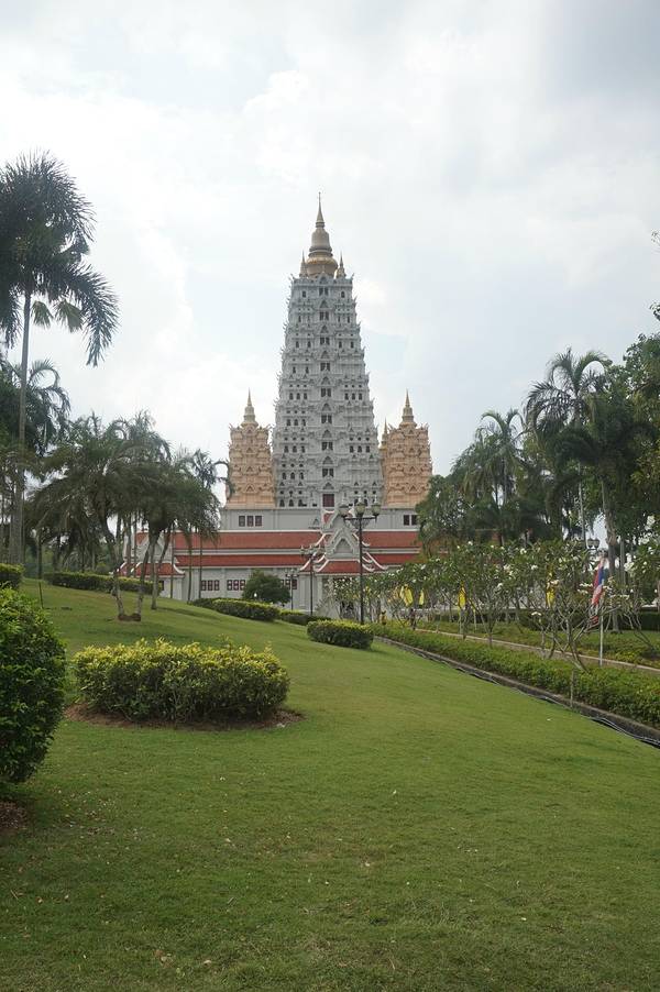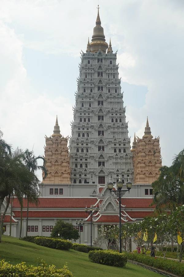 九世皇庙----泰国人都叫它“国王庙”。泰国是佛教国家,走进泰国每一座寺庙,都可以看到刺眼的金光。彷佛泰国人把所有的黄金都慧赠给他们所虔诚膜拜的佛祖,以至于让你怀疑泰国是不是已经跃然成为发达国家或者黄金已经不再是稀有金属。朴素简洁的皇庙九世皇庙的建筑款式与其它庙宇不同,朴素精巧,没有其它寺庙的金碧辉煌和规模宏大,一切遵照国王谕示,以节简和朴素为原则,盖成了佛殿、方丈楼、僧舍、综合楼、水池、厨房和其他必需用房子,每座建筑都是白色的,表示纯洁、漂亮。