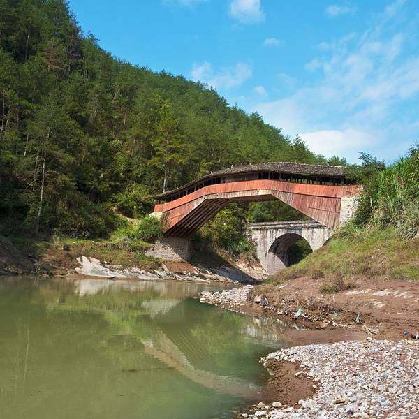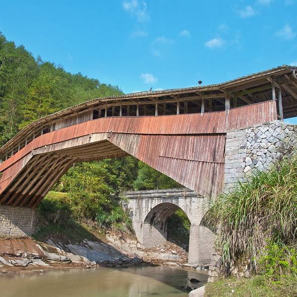 如今廊桥的实际功能已被各式各样其它桥梁取代,留给人们更多的则是观赏、怀念、思乡。风格古朴的仙居桥仙居桥位于泰顺县仙稔乡仙居村,距县城20里。创建于明景泰四年(1453年),历经四次重建。桥毁之因,皆罹水患。现桥为清康熙十二年重建,全长41.83米,宽4.89米,离水面净高12.6米,跨径34.14米,为平孔木拱廊桥...仙居桥位于泰顺县仙稔乡仙居村,距县城20里。创建于明景泰四年(1453年),历经四次重建。桥毁之因,皆罹水患。现桥为清康熙十二年重建,全长41.83米,宽4.89米,离水面净高12.6米,跨径34.14米,为平孔木拱廊桥。该桥凌空高架,结构精巧。有廊屋十八间,80柱,单檐。是泰顺县跨径最大及历史最长的木拱桥。 展开