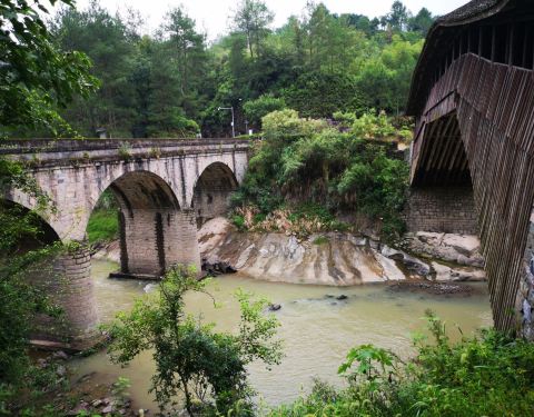 仙居桥,无疑也是许多人心目中最美的泰顺廊桥之一仙居桥,无疑也是许多人心目中最美的泰顺廊桥之一。它位于“温州古道”罗阳至仙居短,始建于明,长42.83米,宽5.30米,离水面高12.6米,净跨34.50米,是泰顺历史最悠久、跨径最大的木拱桥。然而历史上也是多次被...仙居桥,无疑也是许多人心目中最美的泰顺廊桥之一。它位于“温州古道”罗阳至仙居短,始建于明,长42.83米,宽5.30米,离水面高12.6米,净跨34.50米,是泰顺历史最悠久、跨径最大的木拱桥。然而历史上也是多次被冲毁重建,最近的一次整修是2002年,桥面还被抬高了1.5米,高于旁边的公路桥。 展开