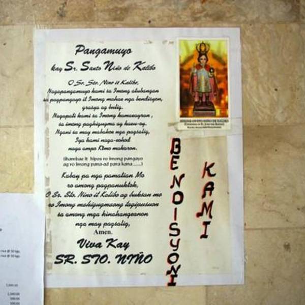 我到时,里面正好在举办葬礼,昨天见识过菲律宾的婚礼,今天正好也见识一下他们的葬礼。没多待,里面气氛太压抑,我静静地溜出来了。这里有一尊神像,回国后专门查了资料,应该是圣婴像。圣婴像本应该在宿雾圣婴教堂,不知道为什么KALIBO教堂也有一尊。
