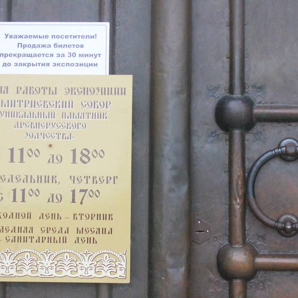 德米特里耶夫斯基教堂的门票100卢布,参观时间在半个小时左右德米特里耶夫斯基教堂位于圣母升天大教堂旁边,是座矩形建筑的教堂。