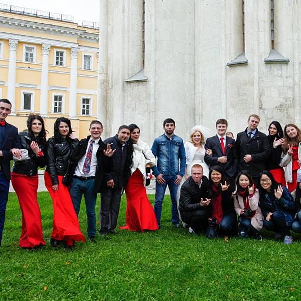 在圣德米特里教堂这里偶遇举办婚礼的俄罗斯人,老远就热情地邀请我们一起拍照。