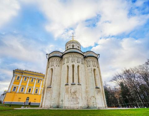 德米特里耶夫斯基教堂位于圣母升天大教堂不远处的花园中,教堂是素雅的白色,四面布满了生动的雕刻德米特里耶夫斯基教堂位于圣母升天大教堂不远处的花园中,教堂是素雅的白色,四面布满了生动的雕刻。教堂本身不允许进入参观。去的时候教堂配上清晨的蓝天白云和日光真是美极了