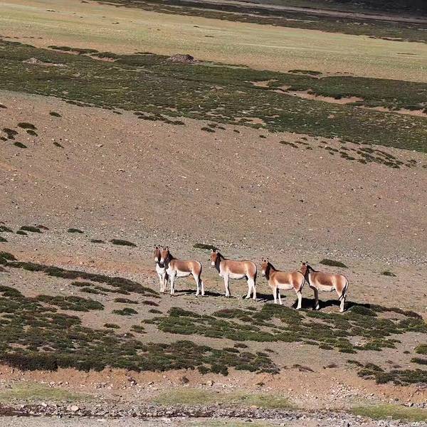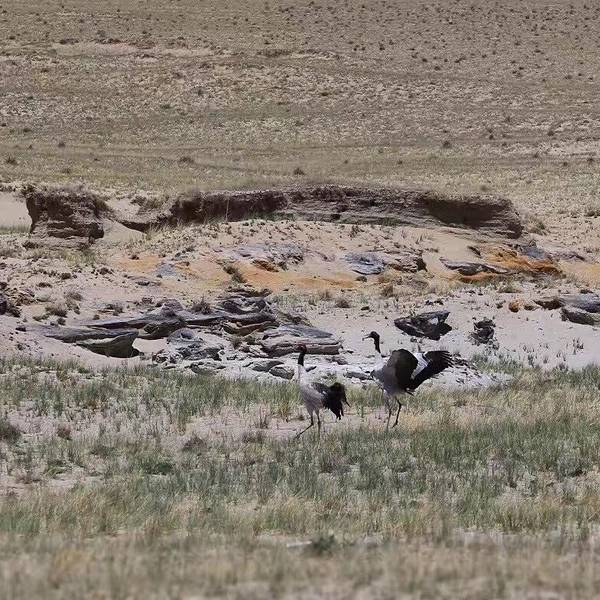 后来从通讯录里联系到了他的家人,顺便也就联系到了手机原主人,原来他离我们不太远,于是我们把手机放在某个边防站就走了,做好事,不留名,哈哈哈。在路上又看到了好多野生动物,这几只小野驴齐刷刷回头看我们,好可爱啊。如果我没认错的话,这应该是黑颈鹤吧?