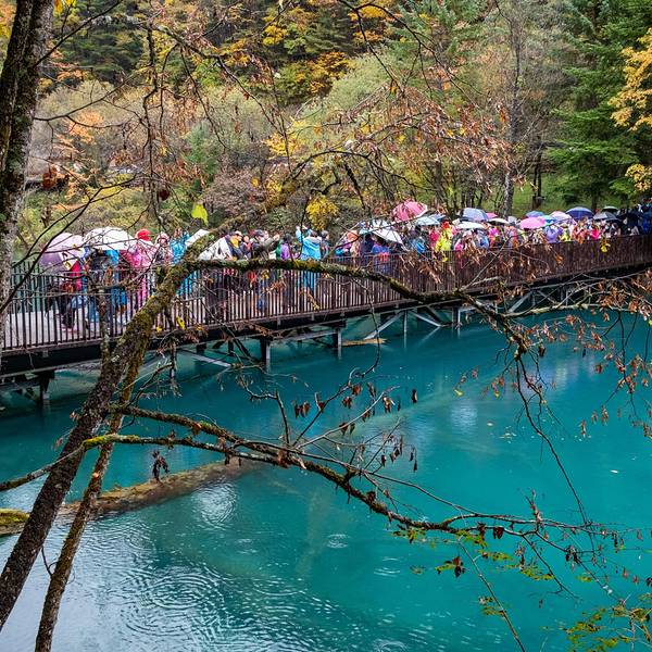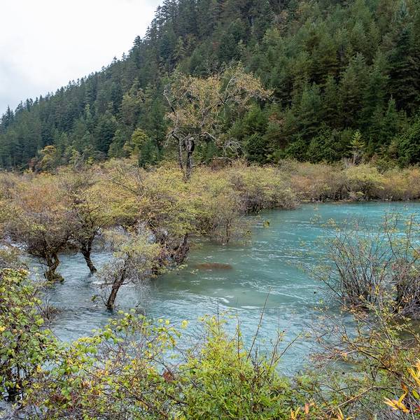 九寨沟的确很大,一天时间基本够用,秋季的水量依然丰沛,三条沟都以海子、瀑布和溪流为景点景色,影响力巨大,客流如织,日限2.3万人。可能是因为天气原因,也可能是之前游过类似的景点,再加上秋色并不明显,对景色如何之美印象不深,反倒是密密麻麻的人群让我想起了有一年国庆长假在重庆的白公馆渣子洞的场景。人太多,每一个景点要取景都变得不太容易。人太多,但也不全是坏事,比如,坐观光车车来车走,基本不需要等。九寨沟一定会再去,看晴天是否真的有那么美。相信是美的,因为那个号称小九寨的贵州荔波小七孔在晴天都很美。景区最高海拔3100米左右,植被茂盛,几乎无高反。