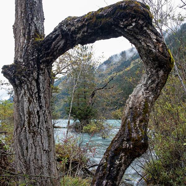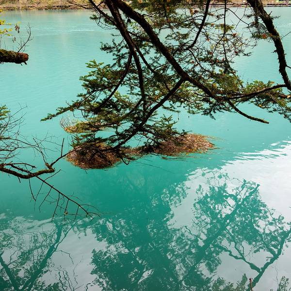 辗转来到镜湖,却发现已经分不清天上地下,车上的撑客发出“哇”的一致声音,我侧耳倾听,却发现我也脱口而出,有多长时间了,多长时间没有听到旅客们见到景观不约而同的感叹和惊讶我只知道只有九寨沟对称美,湖底的倒影让你傻傻分不清楚