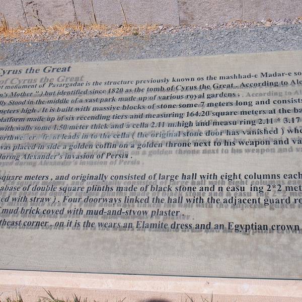 居鲁士大帝是有史以来第一位建立起横跨亚非欧三大洲帝国的皇帝,也是阿契美尼德帝国的建立者,公元前529年战死沙场,之后被埋葬于此。帕萨尔加德是居鲁士时期建立的帝国首都,名字的含义是波斯的花园,可惜花园难见,现今仅剩荒凉。