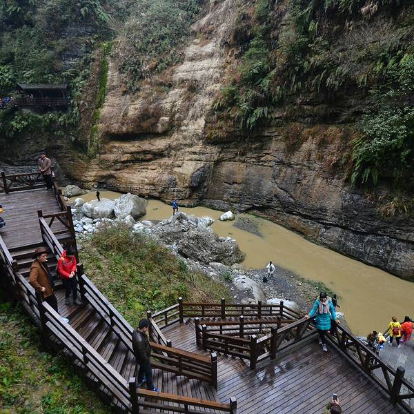 沿着步道一路向下,就可以与地缝来一次亲密接触了,看看地球的伤痕,感慨大自然的...云龙地缝有着“地球最美伤痕”的称号,这里谷深林密,流水潺潺,平均气温比恩施主城区低4-5度,夏天来这里避暑也是很好的选择。