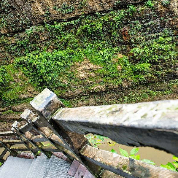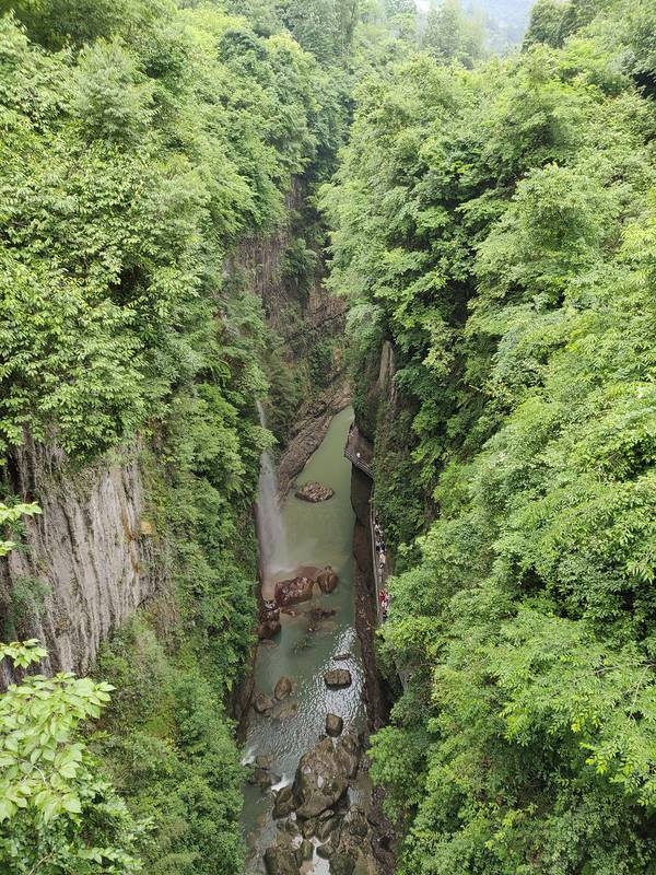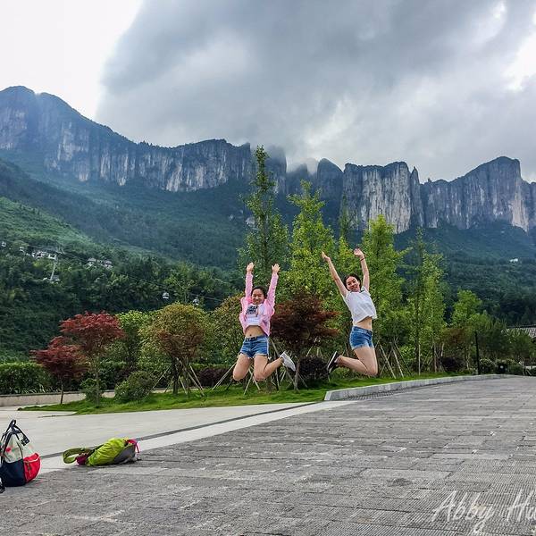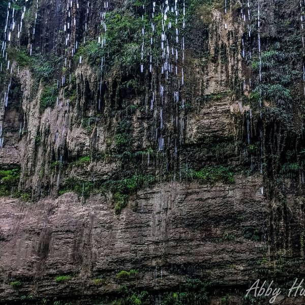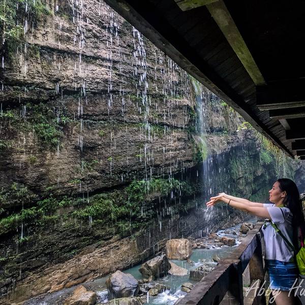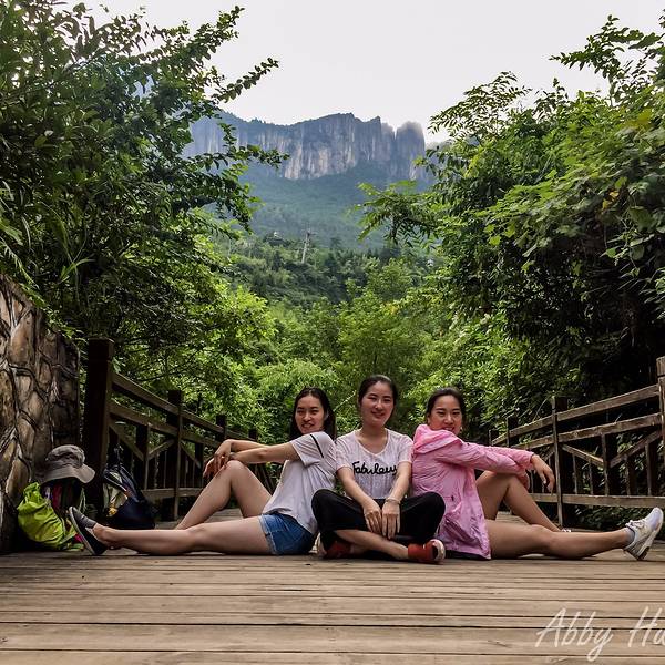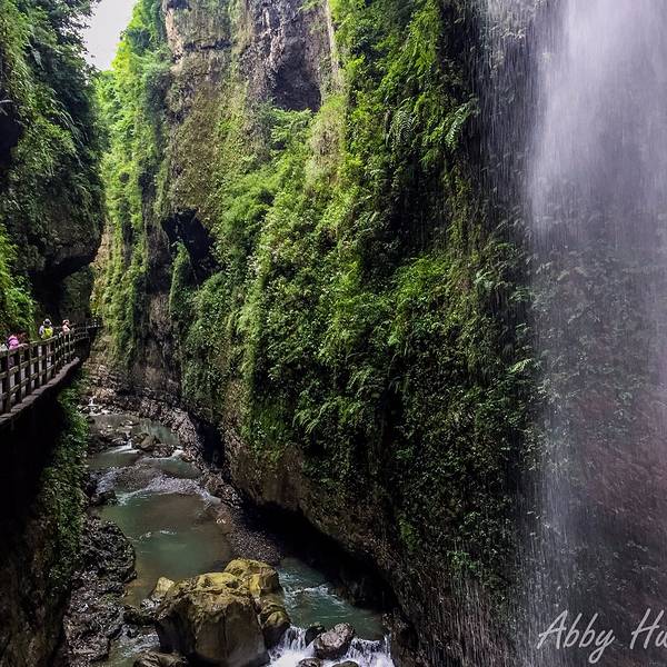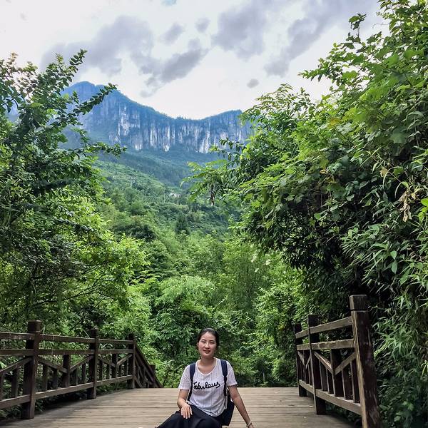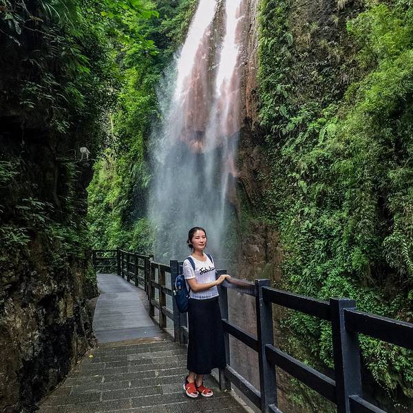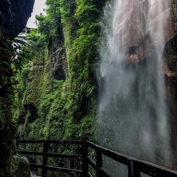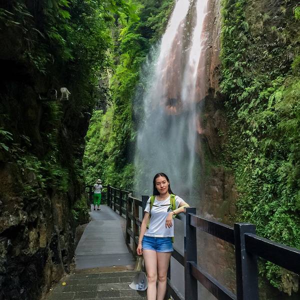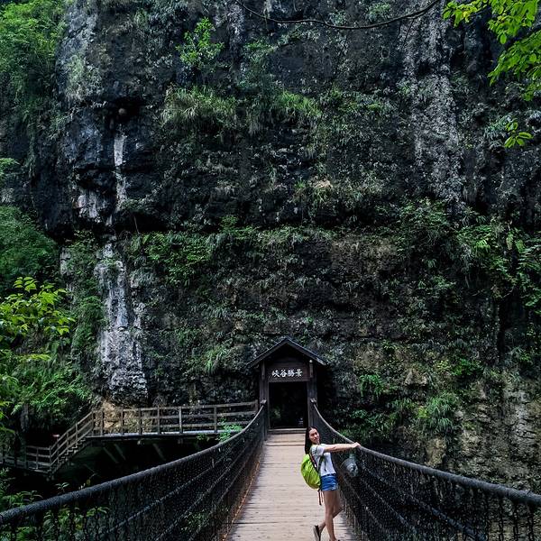 在地缝景区仍可仰望七星寨绝壁,此时地缝景区里几乎空无一人,看来我们逆流游览的选择是正确的明智的✌️两枚女神经想在此拍跳跃照,但此时只有iphone可用,没想到连拍速度杠杠的,做成小动画更好玩此处有仙气,尽管时间紧迫,仍要在此留影我先给刘大姐拍了张,是不是拍出了仙风道骨换作她给我拍...结果一秒变瘫痪....刘大姐说我们拍的太一本正经,要来点不一样的....然后....就骑在了芝芝身上....关键时刻还笑场,真是不敬业横跨地缝两端的风雨桥,站在上面可以俯瞰地缝全貌下到底部,立刻感觉到四周透过来的凉意。看我给刘大姐拍的大长腿,分分钟一米八再看我...大概只有一米五绝壁飞瀑,青苔丛生水流滴滴答答 拍出来好似一串串虚线天然形成的神仗游玩到此,因时间有限,我们便离开了。出口在地缝的中间段,是非常陡峭的阶梯,爬上去很辛苦。若时间充沛可以一直走完地缝,终点处有垂直电梯可以乘坐上山,省去一段辛苦。