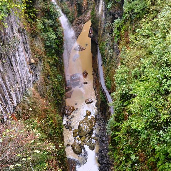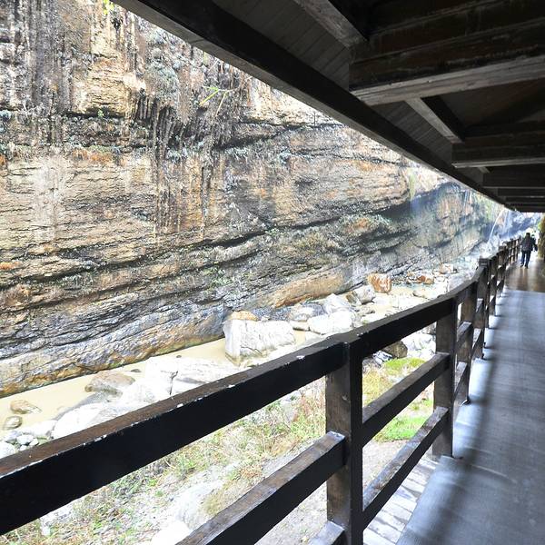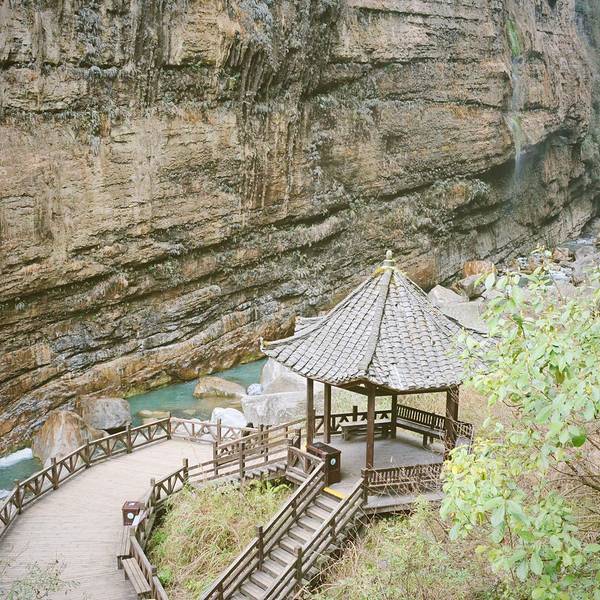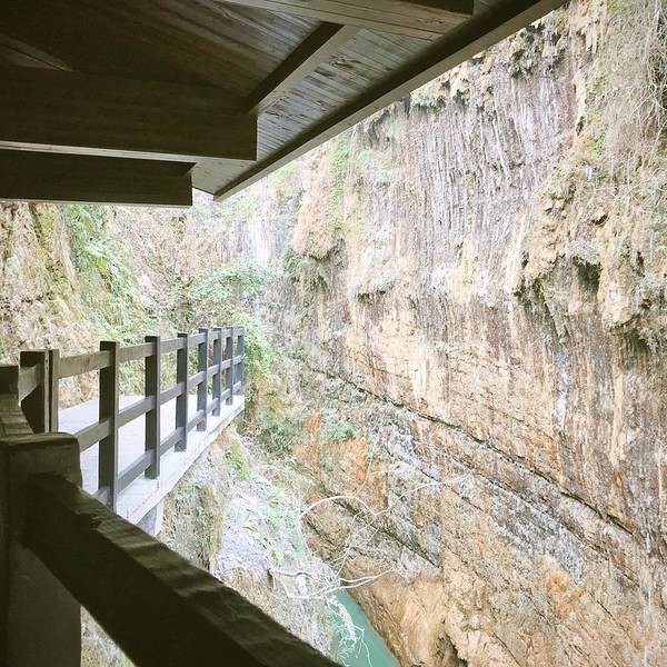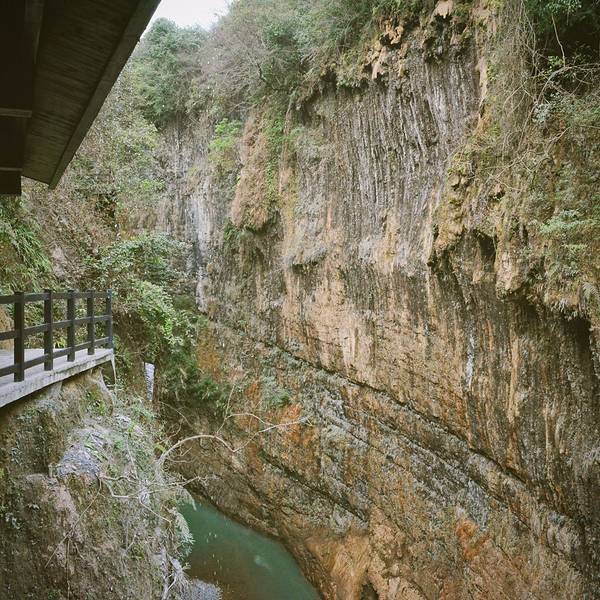 即将进入悬空栈道,无线风光尽收脚下,尽入眼帘云龙地缝至少形成于5千万年前,从地缝顶部到地缝底部的地层主要为形成于2.1-2.9亿年间、跨二迭与三迭纪的灰岩,是世界上唯一两岸不同地质年代的地缝。