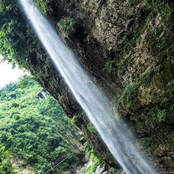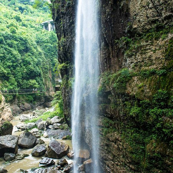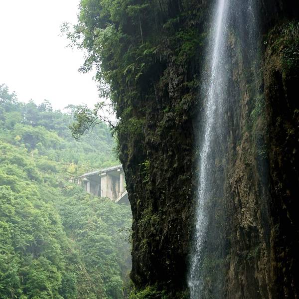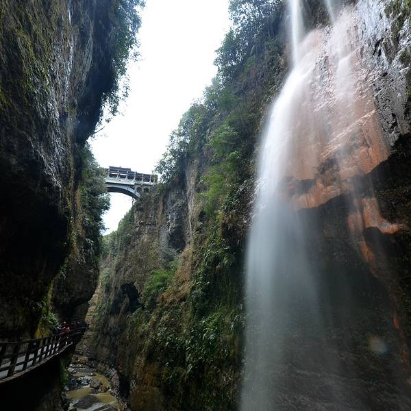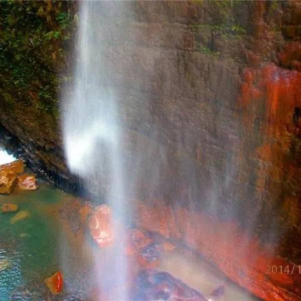 世界上唯一两岸不同地质年代的地缝。绝壁环峰从,地缝接飞瀑