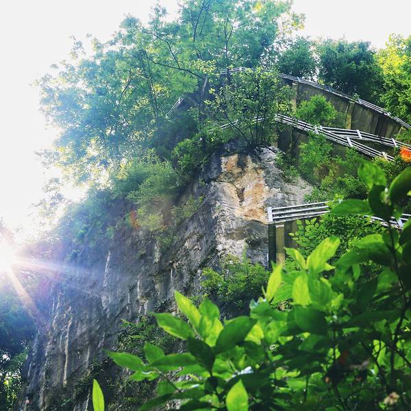 这条小河就是 云龙 河了, 云龙 河大概在几千万年前是以暗河的形式沉睡地下的,后因水流在地下强烈掏蚀,在地表不断剥蚀、致使暗河顶部坍塌,地缝才得于面世,成为 恩施 大峡谷一大奇观。我们到达这里的时候已经没什么游客了,所以看到吊桥时很兴奋,不停的拍拍拍。过了吊桥之后的路依据山势被人工开凿成了一条“晴雨长廊”,因为山体间有水流冲刷会有水滴落下,而外面明明是晴天还能看到阳光,所以有些东边日出西边雨的感觉。近距离看瀑布,感觉一伸手就能够到,其实再走近一点水是能溅到身上的。这段上山的路大概是整个大峡谷爬得最让人绝望的地方了,全程几乎都是这样的很陡的坡度,没有索道和电梯,完全只能自己爬,所以感觉特别耗体力,脚都抬不起来的感觉。但是没办法,除了徒步上去没有捷径,再累也得自己慢慢走。上来以后,我们一行所有人都歇息了好一阵,大家都被这段路给累趴了。不过比起整个大峡谷的风景而言,付出点艰辛还是很值得的,因为大峡谷的自然风貌和科学价值绝对是世界级的。 展开